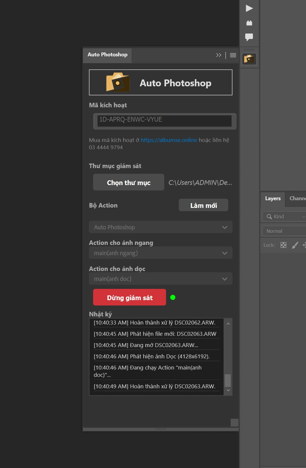 6. Mở Plugin Auto Photoshop → Nhập key → Chọn đường dẫn